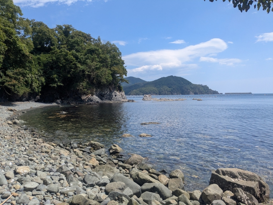 朝は時間があったので、旅館の目の前にあるプライベートビーチに行きました。誰もいなかったので独り占めして、音楽を聞きながらしばらくぼーっとしていました。波の音が心地よく素敵な場所でした。