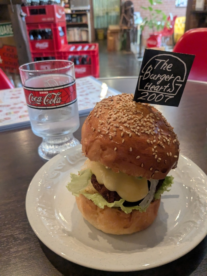 また、盛の駅で美味しいと噂に聞いていたハンバーガーショップBurger Heartsでハンバーガーを食べました。たくさん種類があって迷ってしまったのですが、鱈のフライバーガーをいただきました。