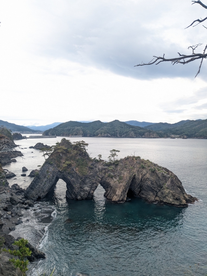 三陸駅では、津波が来ても倒れなかったポプラの木(ど根性ポプラという名前がついています)や、津波で壊れてしまった建物の部品を集めて作った、震災伝承施設 潮目という建物を見学しました。最近は潮目にみちのくトレイルをしているハイカーさんがやってくるようです。潮目を作った方にたまたま会うことができ、壊滅的な被害を受けても立ち上がってきた越喜来の強さを感じました。