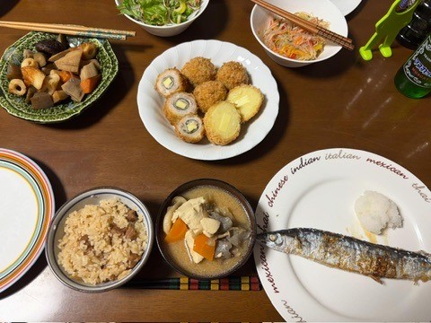 夜にはCさんにお誘いいただき、ご自宅でさんまをいただきました。お手製のいものこ汁も絶品でした!