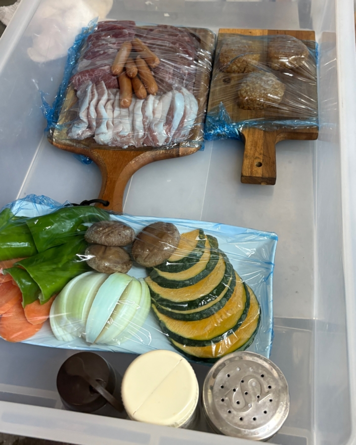 ミャンマー出身の方々と一緒にバーベキューの食材、火の準備などをしました。グランピングの敷地内では、ゴルフ場にあるようなカートで移動します。とても新鮮に感じ、自然の中を風を切りながら走るのがとてもスリルがありました。